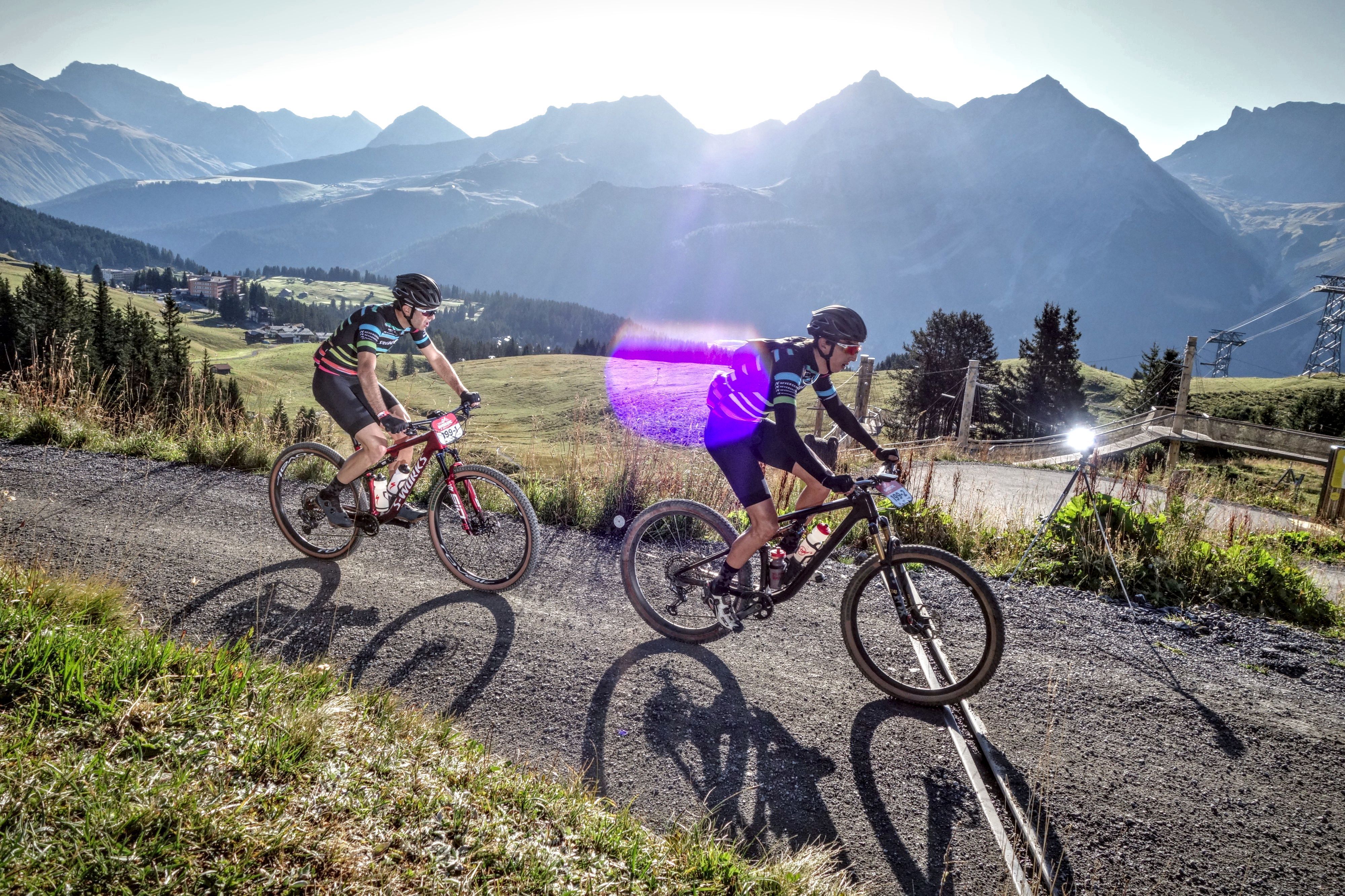 Estamos hechos para ese momento y los paisajes inspiran a apretar esos pedales sin temor. Ríos cristalinos. Bosques sin un gramo de basura, caminos donde cada raíz o piedra parecen haber sido puestos a propósito. Las cuestas empinadísimas. Las bajadas, ni se diga. Hay las diseñadas en planos y hay las naturales. Las naturales, empinadas, resbalosas, demandantes de una atención milimétrica, de una confianza en las habilidades propias, en el instinto puro, en el labrado de las llantas, ni muy infladas, ni muy desinfladas, cualquier error puede destrozarlo todo. Y ahí vamos, Reyes delante, yo atrás, respirando profundo, los dedos índices rozando las maniguetas de los frenos, todos los sentidos activados para que los suelos suizos y sus espectadores sepan que nuestra sangre ecuatoriana no se achica. Vamos Ecuador, oímos que grita un grupo de aficionados. Y luego más subidas, más bajadas, tramos de lastre, tramos de asfalto, vacas, zumbidos de drones sobre nuestras cabezas, flashes de cámaras de fotos.