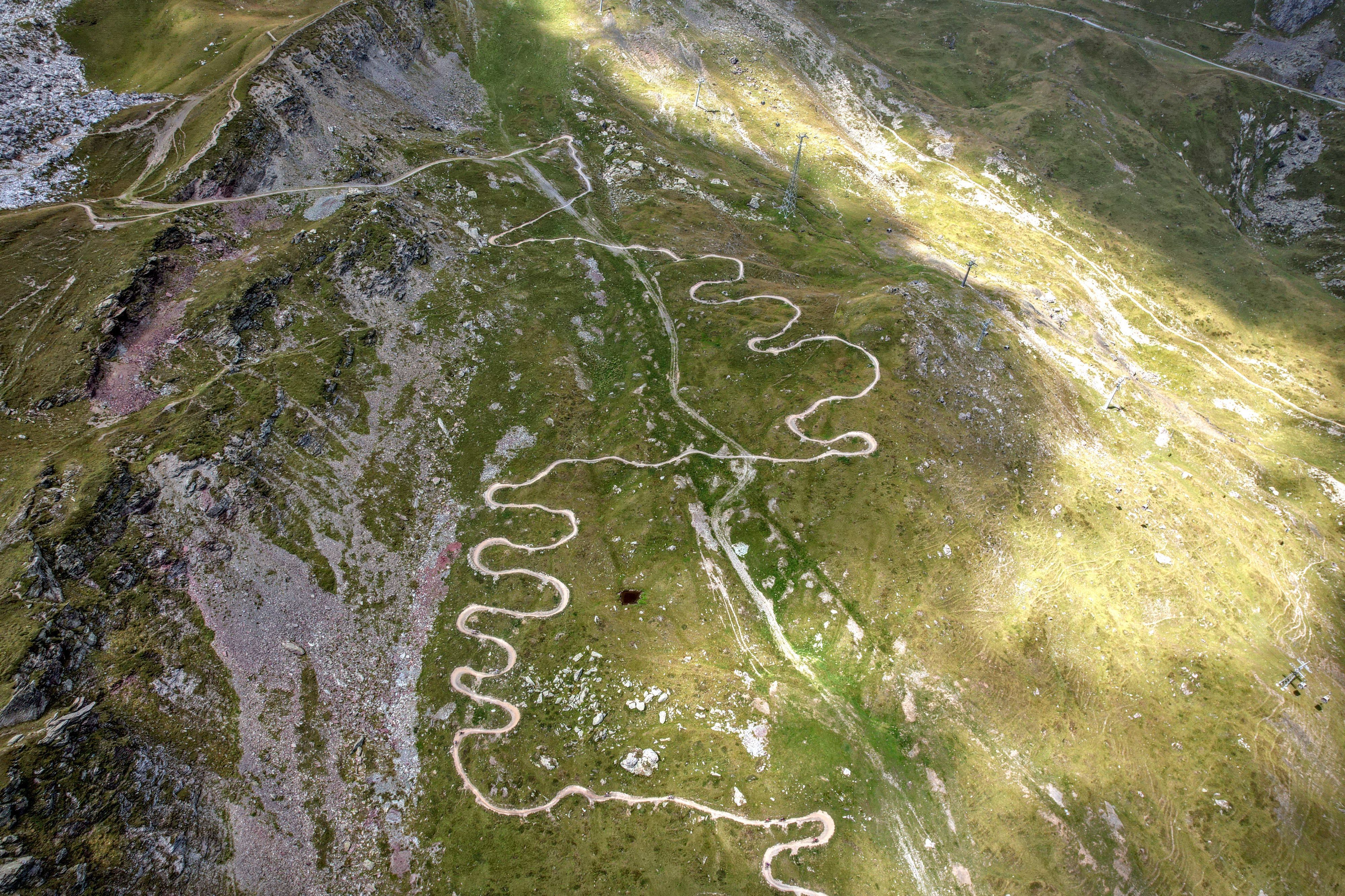 Luego de los alphorn, se despliega la última bajada que es un sendero que desciende como una serpiente hasta el poblado de Arosa que se divisa cientos de metros más abajo. Ya la conocemos porque practicamos en ella el día anterior, pero después de tres horas y media a una intensidad tan fuerte, las sensaciones son otras. El cansancio ha debilitado la mente y el cuerpo, las pantorrillas queman y claman descanso, el cerebro no pone la misma atención.